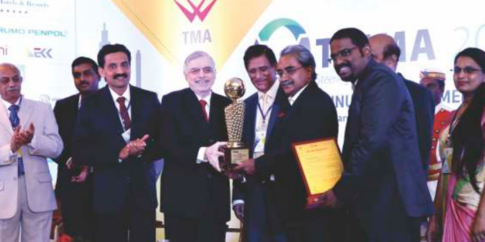 TMA-Terumo Penpol CSR Award 2017 was presented by Sri. Justice(Retd) P. Sathasivam, Hon'ble Governor of Kerala to Tata Consultancy Services for their various commendable CSR initiatives and the award was received by Sri. Dinesh P. Thampi, Vice President & Delivery Center Head –TCS Kerala & Sri. RobinTommy, Head –ILP Innovations Lab, TCS at the inaugural session of TRIMA2018 held on 15th February 2018 at Vivanta by TAJ, Trivandrum.